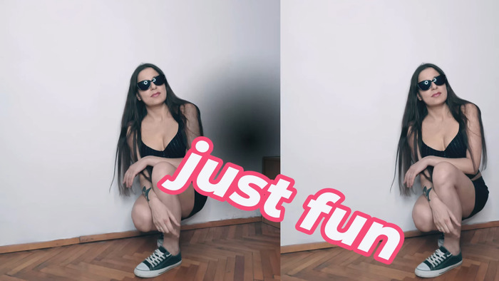Then came the high-heel theatrics. She clicked, stomped, and leaned into each gust as though daring it to challenge her. The sound of heels against wood, mixed with the rush of wind through the open windows, became a symphony of urban-chic meets countryside-cool. She even spun near the balcony, letting the wind lift the tiny flaps of her top and vinyl sheen, making her look like a whirlwind of style, energy, and fun.